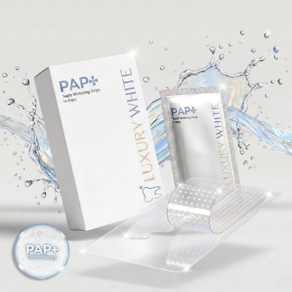 Do you want whiter teeth in a safe and easy way? Luxury White's PAP+ Whitening Strips are specially designed to make your teeth up to 8 shades whiter, without any sensitivity or damage to your tooth enamel. These advanced strips are suitable for daily use and ideal for anyone who wants to quickly and effectively whiten their teeth at home.